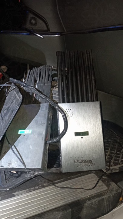 Al realizar la inspección preventiva confirmaron que se trata de la unidad reportada, encontrando en su interior dos inhibidores de señal.