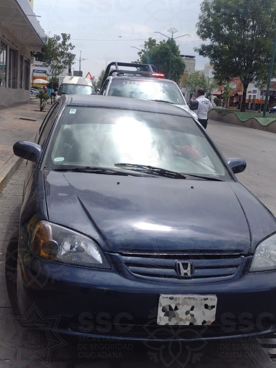 Posteriormente, personal de la Dirección de Seguridad, delegación Tlaxcala, tuvo contacto con un vehículo estacionado y con el motor encendido, el cual coincidía con las características reportadas ante el Servicio de Emergencias 9-1-1.