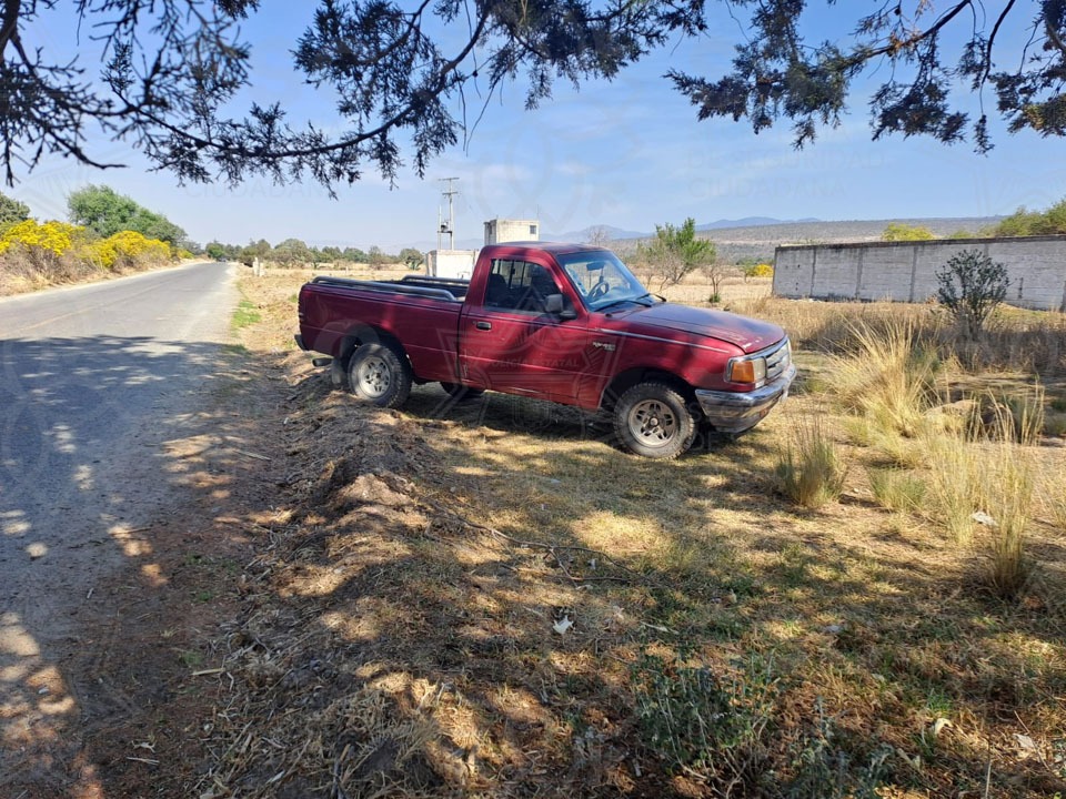 Finalmente, en Yauhquemehcan, los elementos estatales aseguraron una camioneta marca Nissan, tipo Pick Up, color rojo, modelo 2009, con placas de circulación de la entidad, encontrada abandonada con huellas de desvalijamiento.